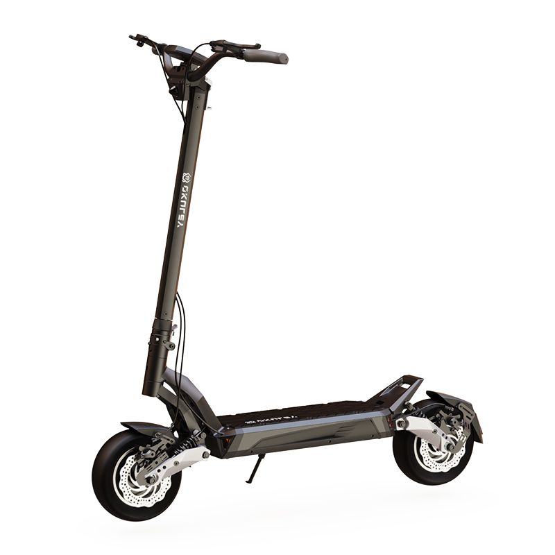 Tá OkuLEY M10 All Terrain Electric Scooter feistithe le boinn aeroibrithe 10-orlach, ag soláthar greim den scoth agus compord marcaíochta. Ligeann a dhearadh uathúil é a dhíchóimeáil go tapa. Éasca le cothabháil. Is féidir leis na maolaitheoirí turrainge earrach dúbailte tosaigh agus cúil an tionchar ó bhóithre garbh a mhaolú. Ina theannta sin, soláthraíonn sé roghanna coscáin diosca agus coscáin hiodrálacha le haghaidh sábháilteachta feabhsaithe.