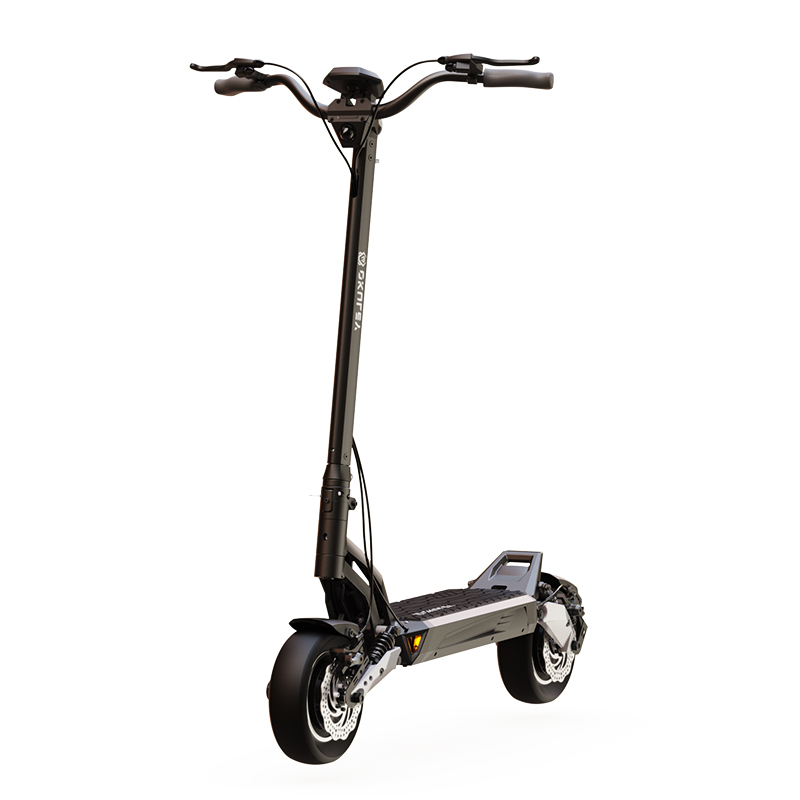 Tá na scútair leictreacha OKULEY M10 feistithe le dhá chumas ceallraí, 52V 23.4AH agus 60V 20.8AH, ar féidir leo suas le 60 ciliméadar de raon tiomána a sholáthar. Cinntíonn dhá mhótar cumhachtacha le cumhacht 1200W nó 1400W tiomáint dinimiciúil agus éifeachtacht den scoth, rud a ligeann duit tiomáint dhá roth nó tiomáint roth cúil amháin a roghnú. Le cumas dreapadóireachta 30 °, is féidir leis dul i ngleic go héasca le haon tír-raon.